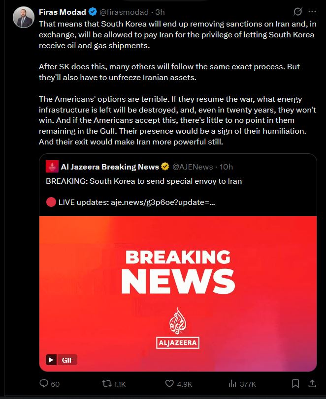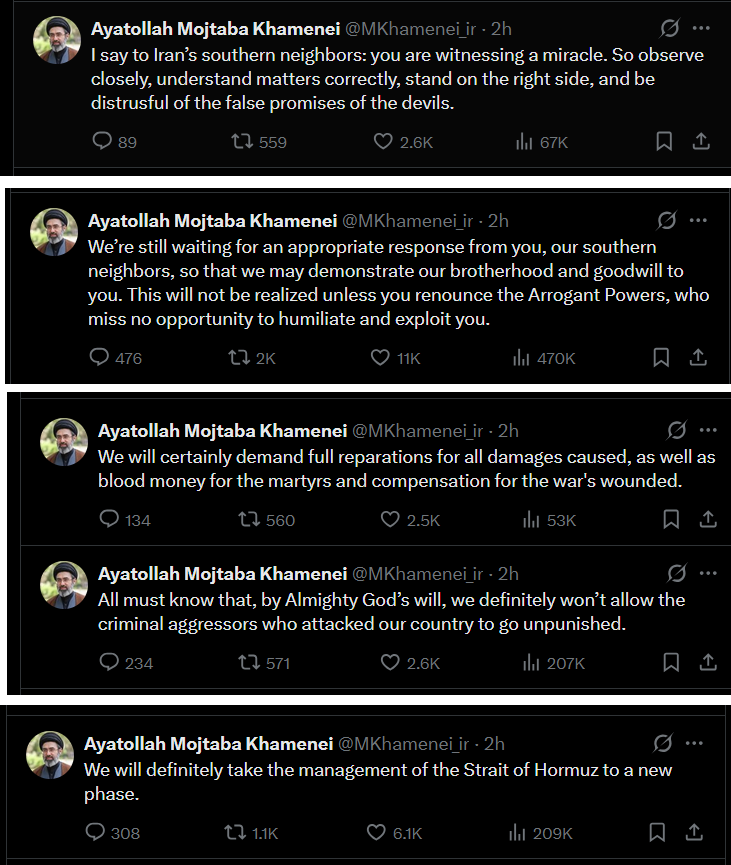 The new Khamenei, Khamenei Jr., claims full ownership of the Strait of Hormuz. Americans are soon going to be forced to pay a toll to pass the strait.