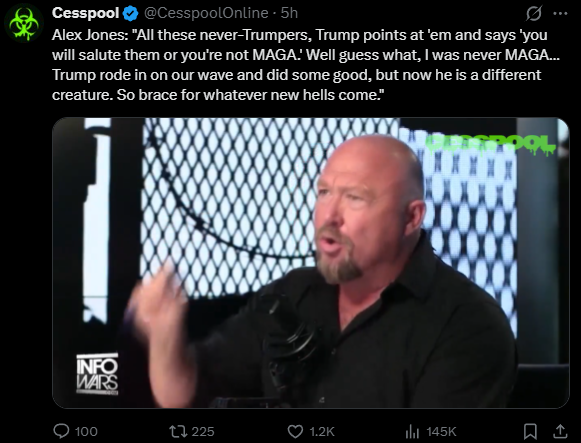 Trump loses without Tucker. Trump loses without Candace. Trump loses without Alex Jones. Trump loses without Megyn. They are not grifters, they are the reason why Trump won and are essentially the voice and torch holders of the MAGA movement. Trump attacking them means an attack on MAGA and Mark "The Great Jew" Levin isn't going to cut it. Trump has changed and he is not longer MAGA, he is MIGA. You stand with MIGA and pedophile protectors, I stand with MAGA.