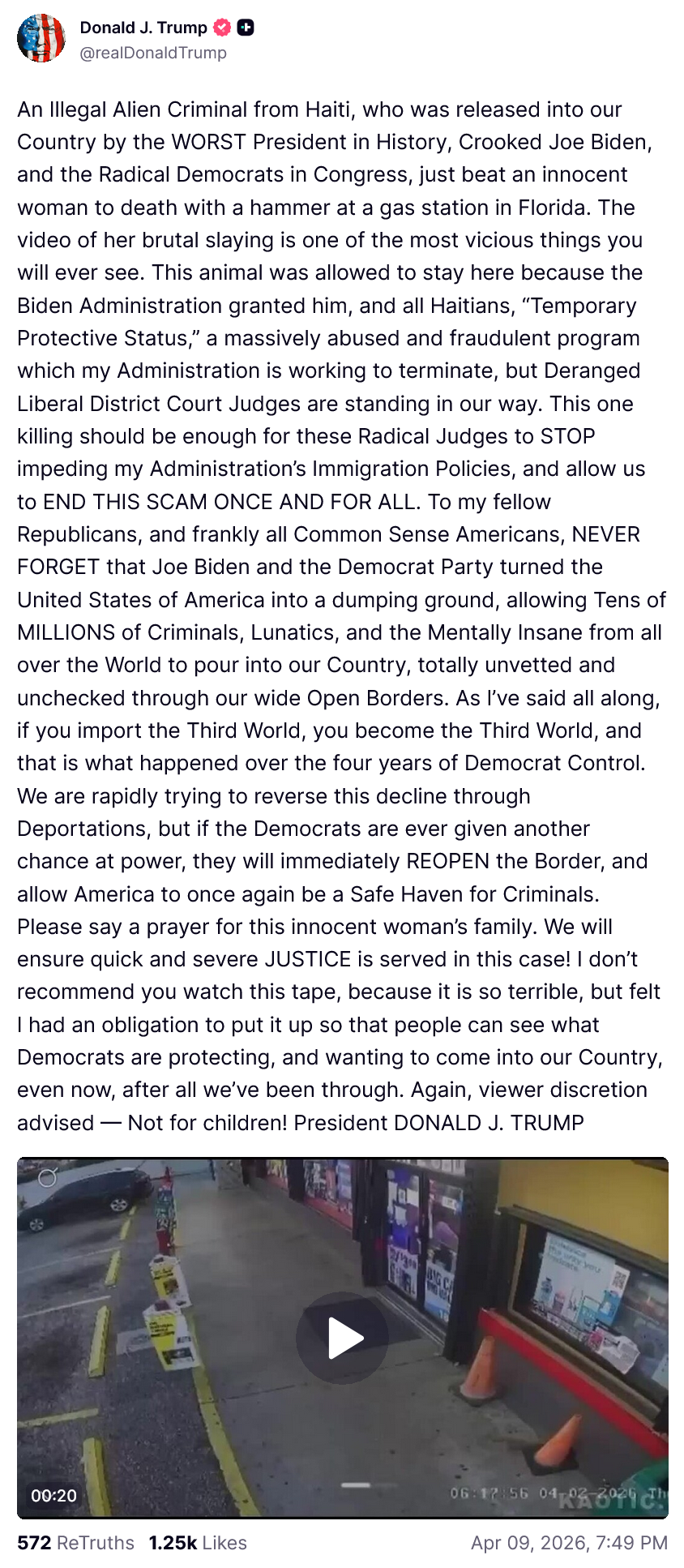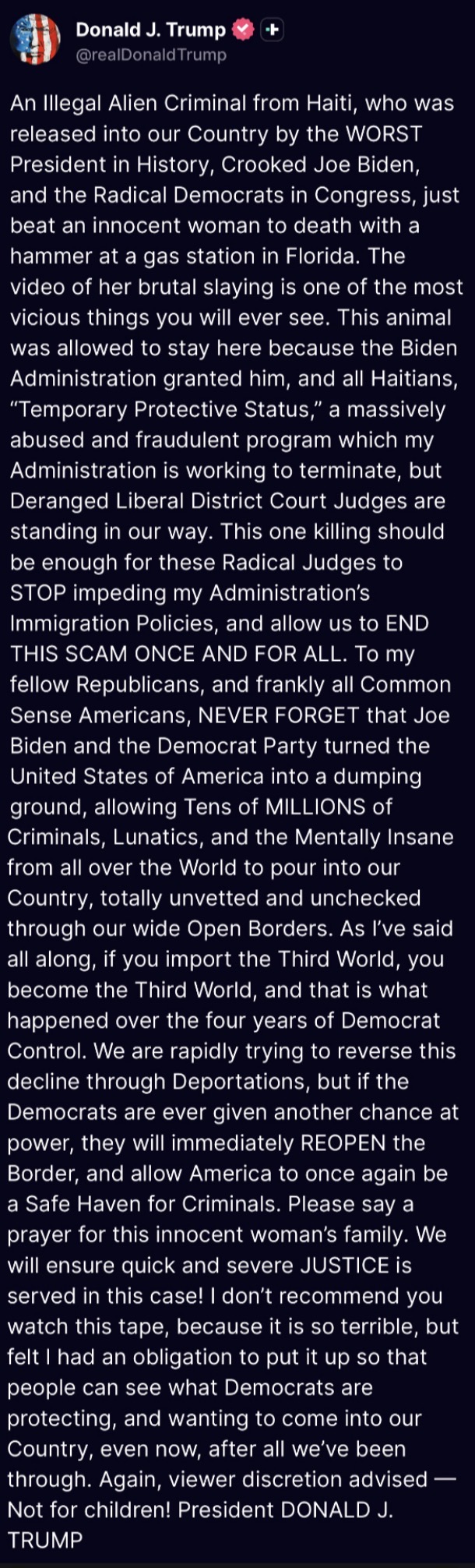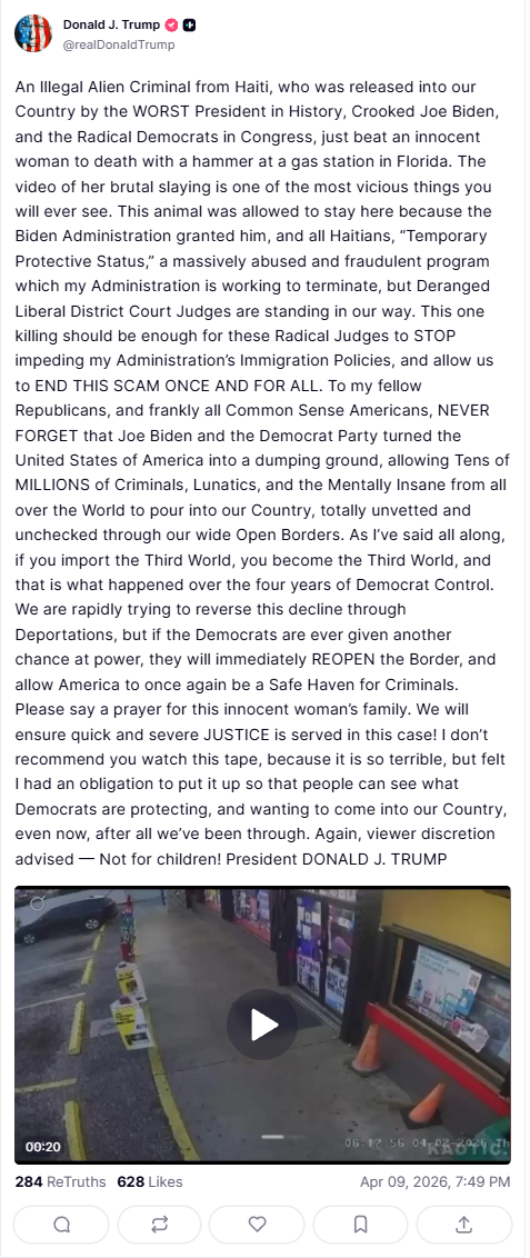 >>532840763>https://truthsocial.com/@realDonaldTrump/116377422440266990>Asylum guys, give them Asylum!!!You can't give Asylum when you don't know who you're letting in.