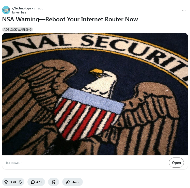 >>532842512>reboot your router to finish installing the firmware we at the NSA pushed out to the web
