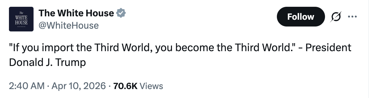 >>532844966Meanwhile back in reality, Trump has changed course on importing third-worlders and has started mass migration again of farm workers, under pressure from farming lobbiesGuaranteed none of his supporters will ever hear about this from Fox, Newsmax, OAN, etc
