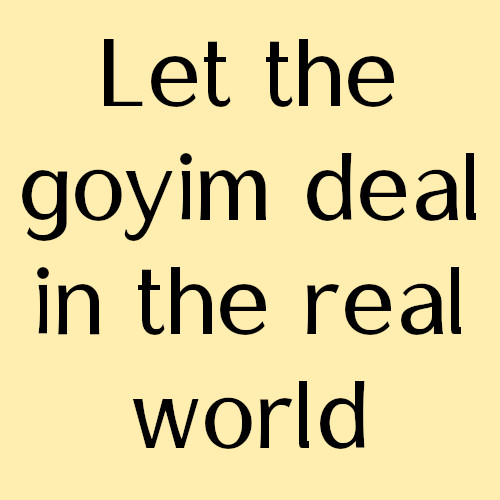 The phrase "let the goyim deal in the real world" is pure Jewish supremacist contempt.It means keep the cattle (non-Jews) busy with jobs, bills, Netflix, sports, and daily survival so they never look up and see who actually controls the banks, media, politics, and real power.To them, the "real world" is the goyim's cage. They operate above it, pulling strings while we fight over scraps.It's not a conspiracy theory. It's how they talk when they think no one's listening.