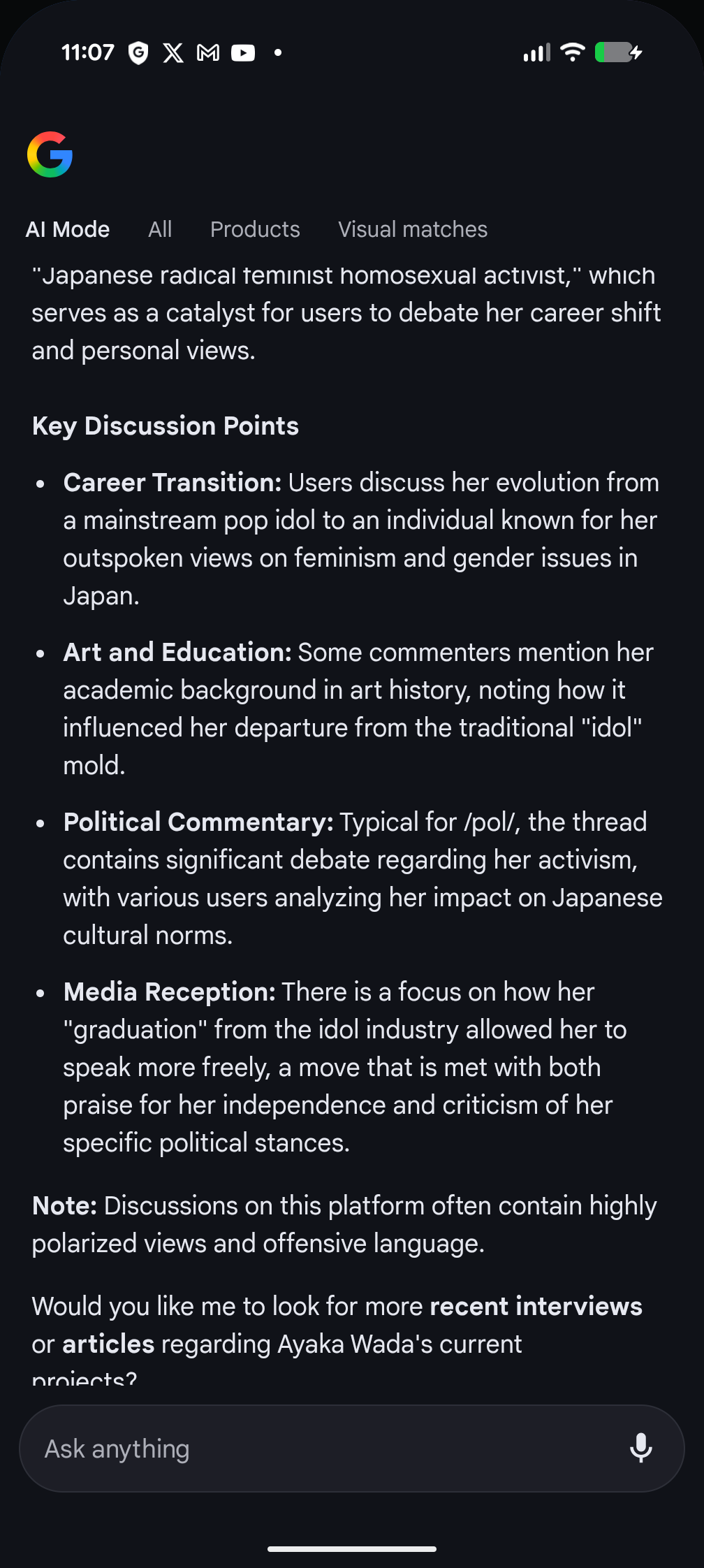 >>532850486Tl;Dr is>Japanese entertainment industry doesn't let me be a slut!>Japanese entertainment media is full of rapists, therefore normal men are rapists too>I now hate Japanese men so much I want to hang out with faggots and be a faggot>Btw I also love niggers and Japanese media is racist against niggers This woman is clinically insane
