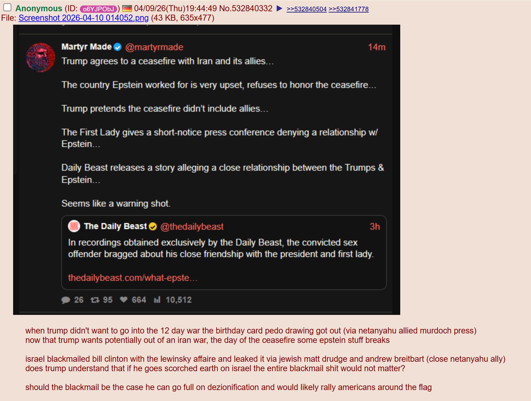 >>532851966probably israel trying to blackmail trump for causing a ceasefire