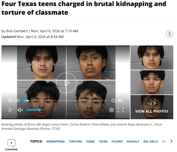 AUSTIN, Texas - Four 17-year-old men are facing first-degree felony charges after allegedly kidnapping and torturing a classmate in an attack planned a week in advance.This is what bitch ass goblinos do when they go to a white country "hoping" for a better life, they start with gang activity, doing drugs and kidnapping or torturing who ever they dont like, deport this retarded goblinos, send them back so the cartels can dismember them.https://komonews.com/news/nation-world/four-texas-teens-charged-in-brutal-kidnapping-and-torture-of-classmate-austin-del-valle-high-school-felony-charges-planned-attack-deadly-weapon-pizza