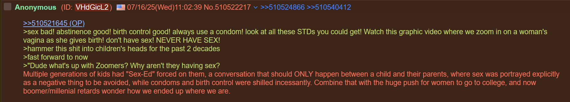 >>532862773You can't have it both waysYou can't have the low trust society with the high trust society benefitsIt doesn't work that wayMen don't like to marry and reproduce with whoresIt's really that simpleSociety has degraded far enough that women are more than happy to prostitute themselves out and be whore #1281 in Chads harem rather than settle for Chud #444 and reproduce. Men have responded by refusing to be doormats for whores who have no value as wives, as partners, nor as mothers. Imagine being the son of a world famous prostituteThat's child abuse