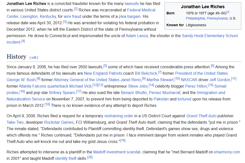>>532860495also a pathological need for attention. see:https://en.wikipedia.org/wiki/Jonathan_Lee_Riches