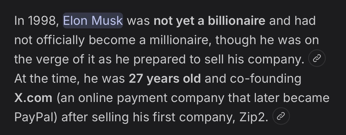 >>532858677Elon Musk became a Billionaire in 2012. this is talking about 1998, when Elon was a startup founder of Zip2