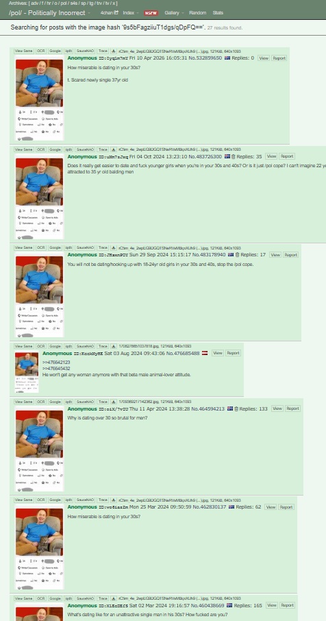 >>532859972Holy shit he's 34? Im still sleepy, I read 39 initially, that guy is fucking cooked when it comes to women. He's fucking done-zo, but a guy like him would ruin your life if you tried to show him what women actually are so fuck that guy. I'm 39 and he looks away older than me.