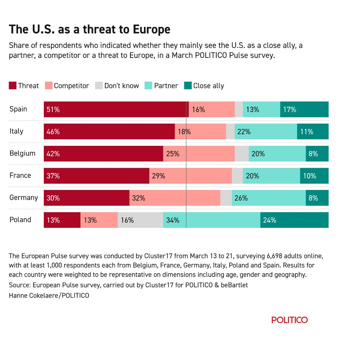 Most Europeans see the USA as a threat or competition
