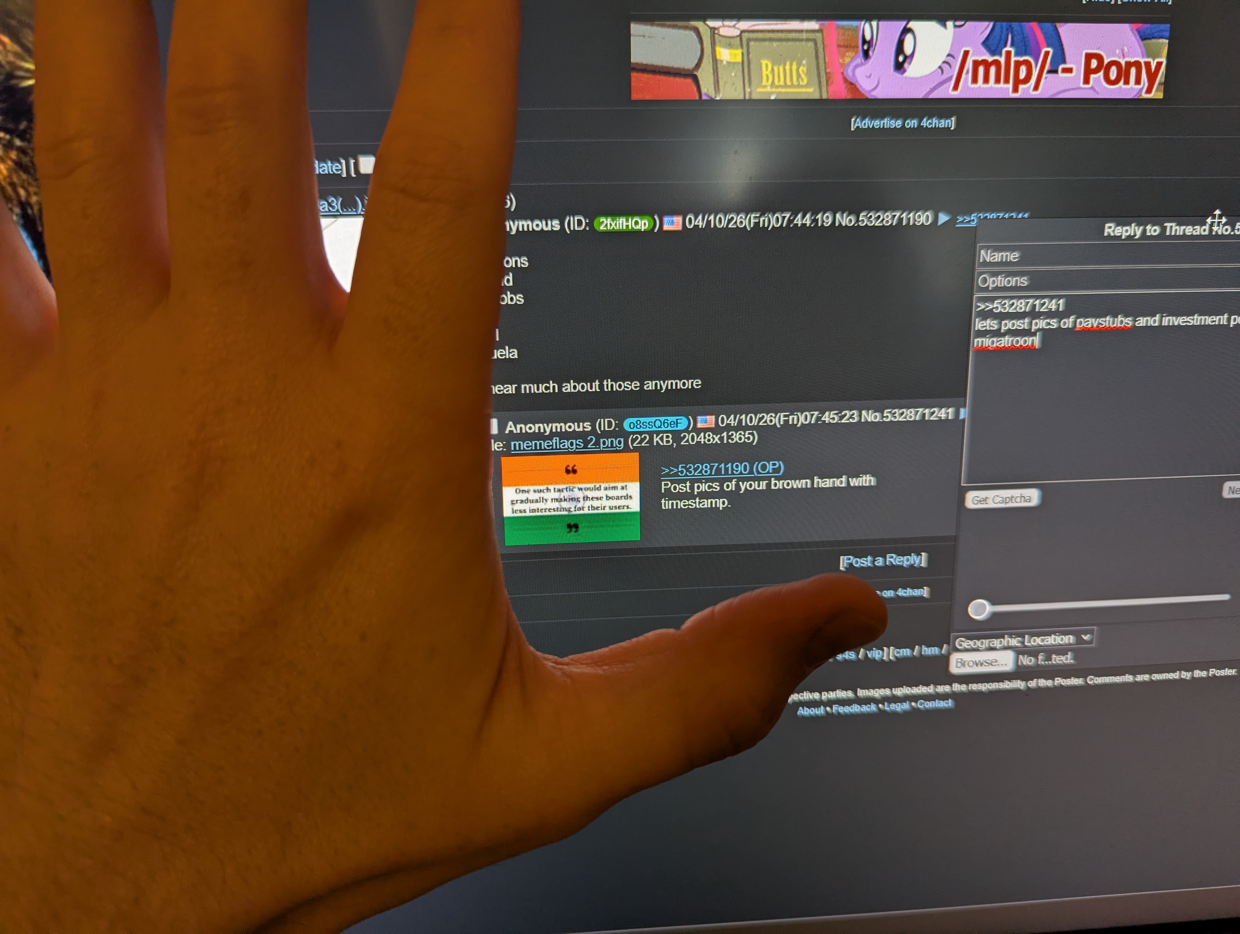 >>532871190Post pics of your brown hand with timestamp.