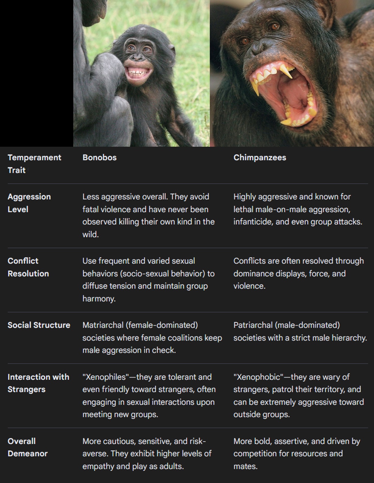 >>532871506Grizzly, are you stupid>>532871452So bonobos are more intelligent but also vulnerable and easily displaced by chimpsThey need to come up with a way to exterminate chimps, maybe poison them