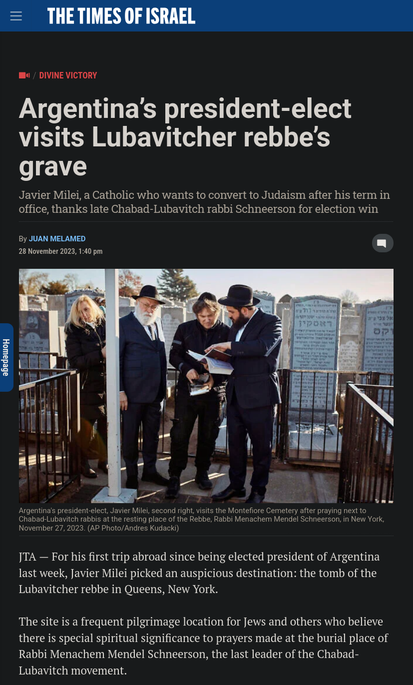 >>532873521>Leaks expose Russian network in Argentina that was paying as much as 300k USD to journalists to publish articles agitating against Milei and trying to cause the collapse of his governmentI was told Chabad controlled Putin. But Chabad obviously controls Milei (see picrel). Butthurt belters lied to me...