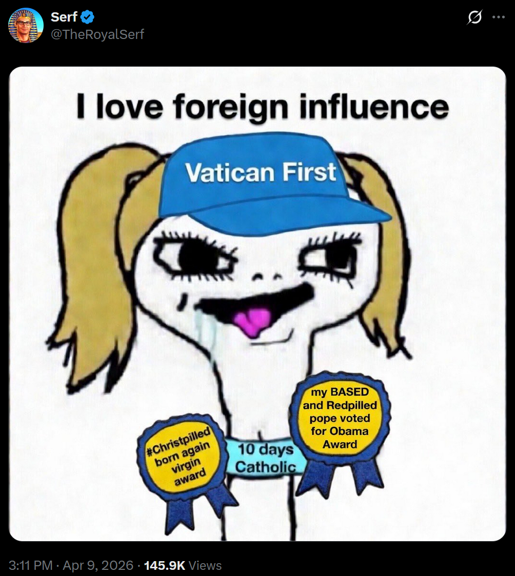 >Trump starts an unnecessary war on behalf of Israel>His retarded cultists blame NATO, Europeans, and Catholics instead of dear leaderlol