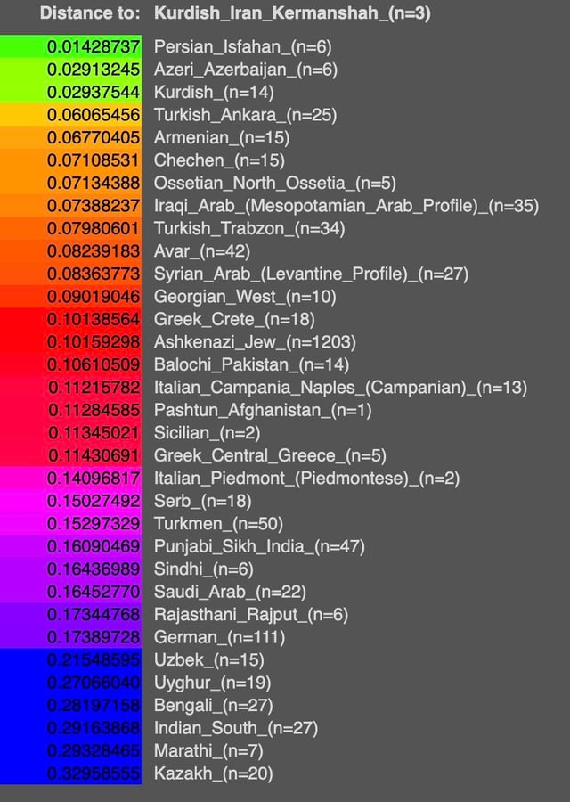 Just reminder that Azeris are closer genetic to Kurds than they are to Turkish, kind funny when you think about it. Also in general, Azeris, Kurds and “Persian”, all very close to each other by multiple genetic studies I seen. Interesting stuff, it good thing to remember that a lot of so called “ethnic group” close to other “ethnic groups” and there are really not that MANY different race in the world