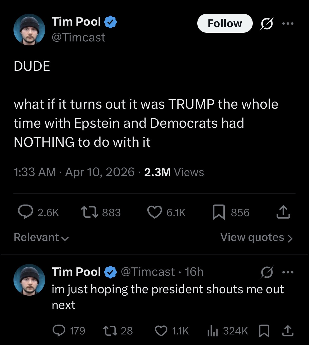 GIGA HAPPENING! Journalist Tim Pool confirms that Trump and Epstein raped kids!https://x.com/Timcast/status/2042385444143271977
