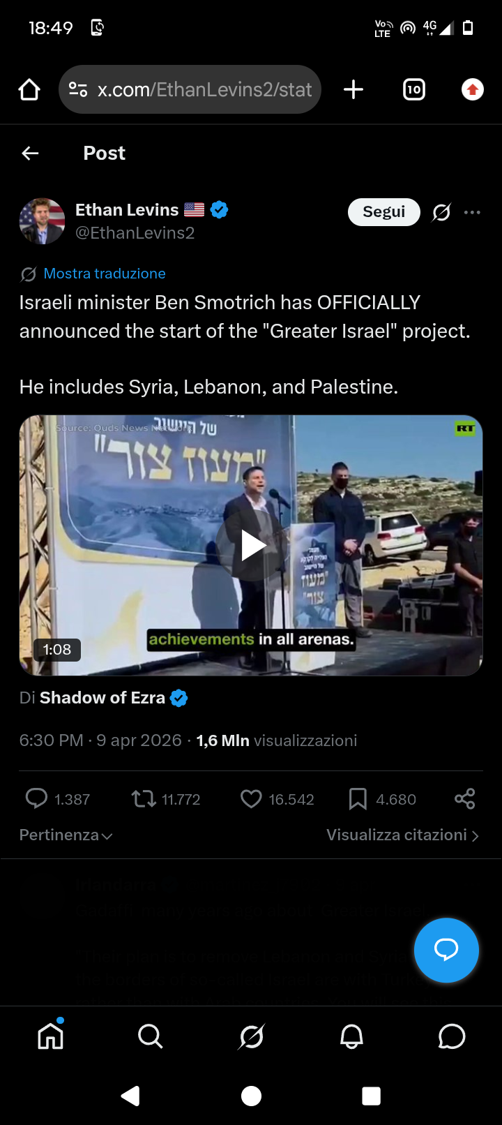 >>532884881Day: 3 of the 14-day ceasefire™ periodDay: 42 of the Special Military Operation™▶RECENT:>Talks for a permanent end to the war will commence on April 11th. US and Iranian delegations include Vance, Kushner, Araghchi and Ghalibaf. (Al Jazeera)>Intense reconnaissance flights over Tehran, Parchin, Tabriz and other cities - Iranian media> Israeli Military have begun striking Hezbollah launch sites in Lebanon.>Brent crude is back to 100$. Northern Israel starts getting lit up with missile alerts>Netenyahu announces they will continue attacking Lebanon despite ceasefire. Hezbollah announces the resumption of military operations against Israel>Hungary privately offered assistance to Iran following a major Israeli operation targeting Hezbollah>Lebanon 316 confirmed dead in Israeli strikes; airports and bridges were stuck>Iran closes the Strait of Hormuz, which was partially open for around 10 minutes this morning, until further notice due to Israel’s attack on Lebanon – Fars>Reports of direct impacts in Be'er Sheva and Tel Aviv, according to Israeli media.▶WARNING:>Do not trust any "happenings" without link/proof>Uкraine / Яussia discussions belong in uнg or cнug▶OILhttps://oilprice.com/oil-price-charts/▶KINO:https://files.catbox.moe/cbd7ug.mp4https://files.catbox.moe/2hwzcx.mp4https://files.catbox.moe/smmsfw.mp4https://files.catbox.moe/x0fbgv.mp4https://files.catbox.moe/20lpu8.mp4The Art of War of Trumptzuhttps://files.catbox.moe/86yxn2.mp4▶Live-streams:https://www.youtube.com/watch?v=4E-iFtUM2kk https://www.youtube.com/watch?v=TdcrT5OcS9c https://www.youtube.com/watch?v=53G-Oy4r6M4 ▶Telegram channelshttps://rentry.org/tgnews▶Israel Rocket Alertshttps://www.tzevaadom.co.il/en/▶Air Traffichttps://www.flightradar24.com/https://flightaware.com/livehttps://globe.adsbexchange.com/▶Maritime Traffichttps://www.marinetraffic.com/