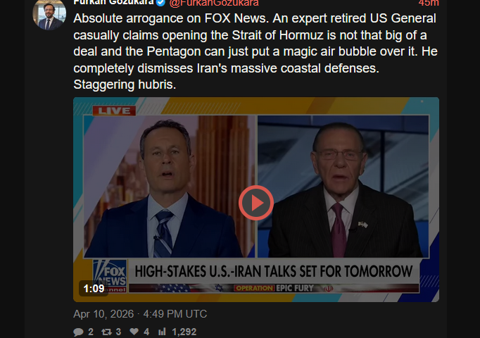 out of touch boomer general doesn't know how iran has raped US AD over the 40 day warhttps://xcancel.com/FurkanGozukara/status/2042646282531914012#mtelegraph, fox news, steve bannon all life in the paradigm of 50 days agothat world no longer exist (we now know better)