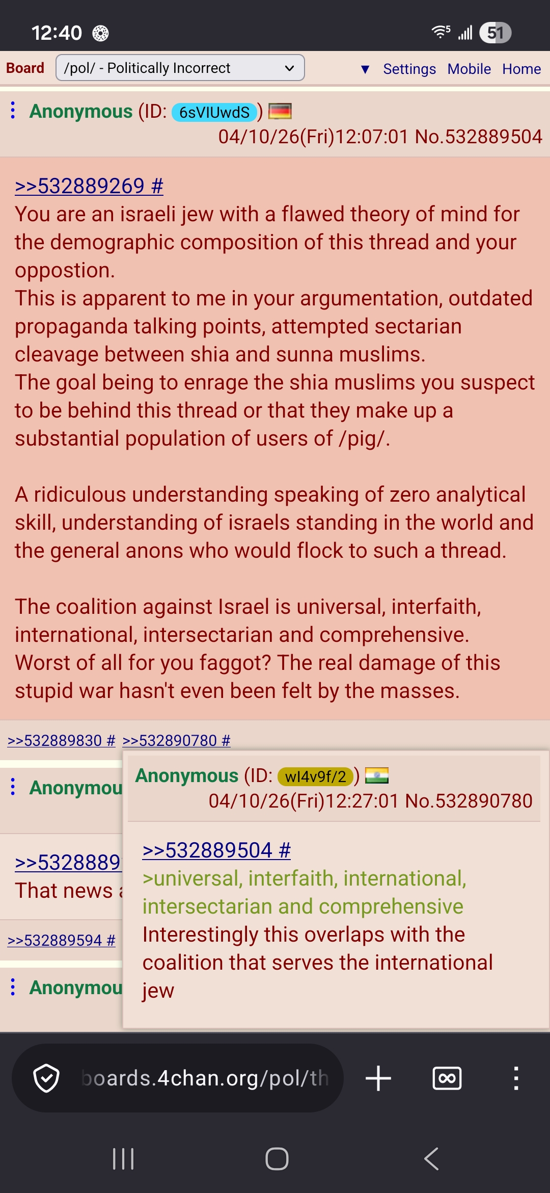 >>532891641>these people who didn't like them now.. don't like themI'm going to give you a tip, if you want to make Iranian boosters sweat, you need to say that Pakistan and Turkey and China are going to turn on them, not these jews/arabs that they've already been fighting for forty years