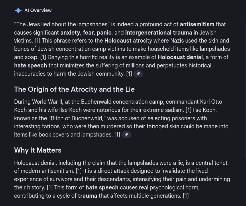 >>532890791Questioning the existence of the Holocoaster, the masturbation machines and the eagle and the bear is the basest kind of antisemitic denialism.