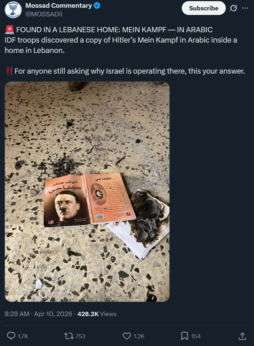 https://x.com/MOSSADil/status/2042505173788958972sickening! Can you believe these people read books?