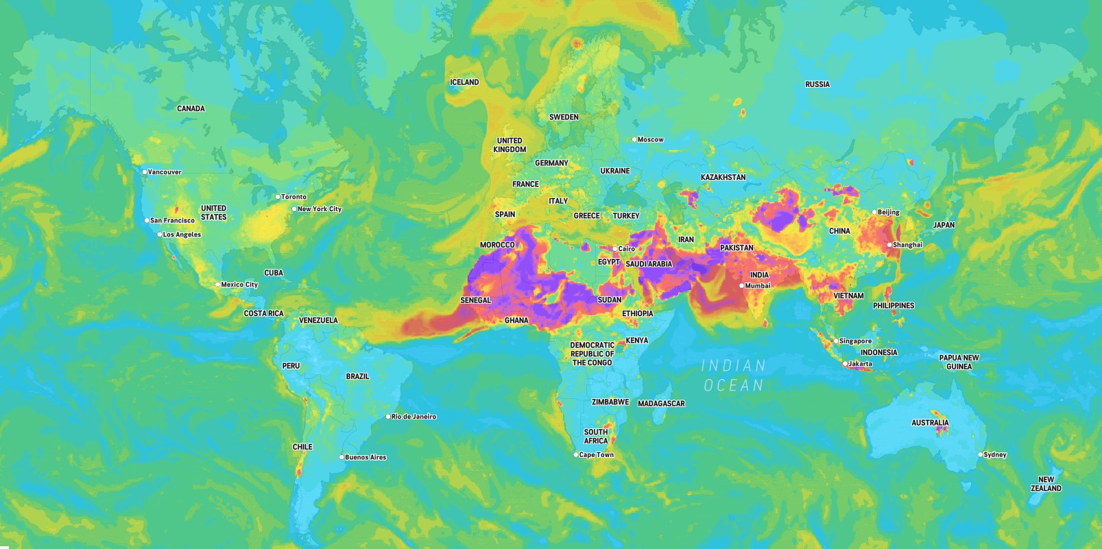 >>532900962Looks like shit that's caught in a stream from the purple areas and the whole world is getting covered in this shit because of the purple areas.However, after looking more into it, turning all the deserts green (or at least Sahara) would actually have consequences for the planet. Apparently the Amazon gets vital nutrients from the particulate that blows over, and it would cause an ecological collapse if you actually got rid of deserts. I guess everything serves a purpose and we just need to deal with breathing in particles sometimes.