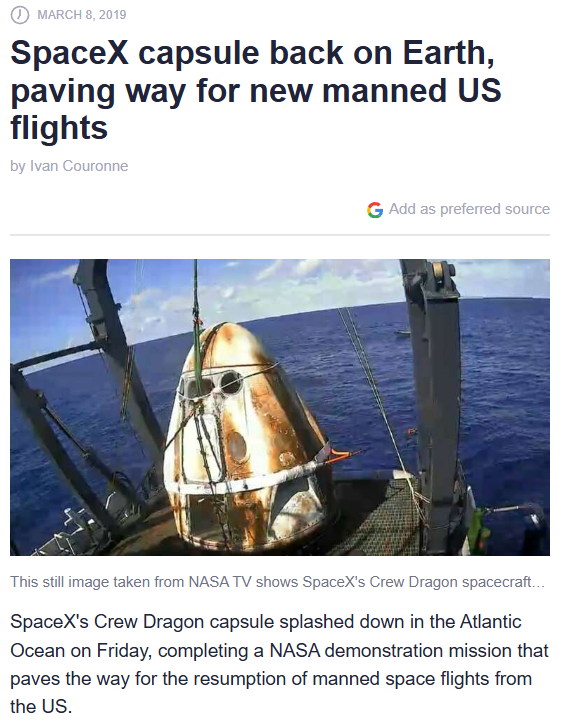 That was the Boeing Starliner module that was designed to talk astronauts to the ISS. And yeah, it failed pretty miserably. At least no one was killed.