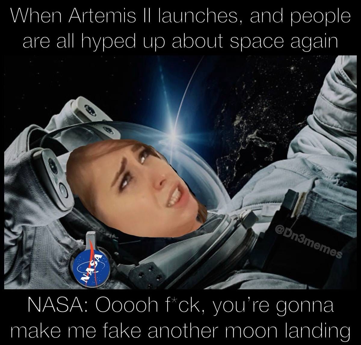 they arent in space and werent anywhere near the moon lol, this mission is as fake as the previous moon missions.