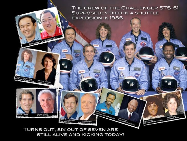 yeah like the Challenger drama, and each of the four dead astronauts happens to have a spitting image twin brothers and twin sister that are still alive and even active on social medai today