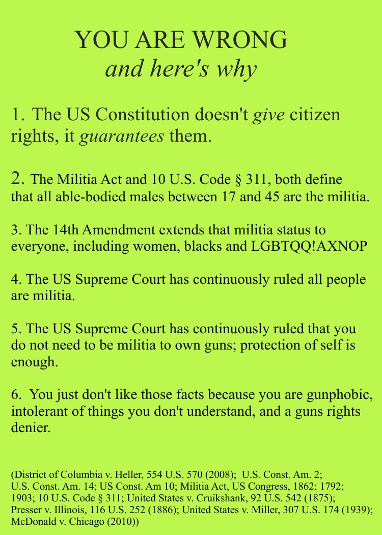 >>532909739The author is a fucking retard because the legal definition of a militia is "every able-bodied male from the age of 13-65" or something.