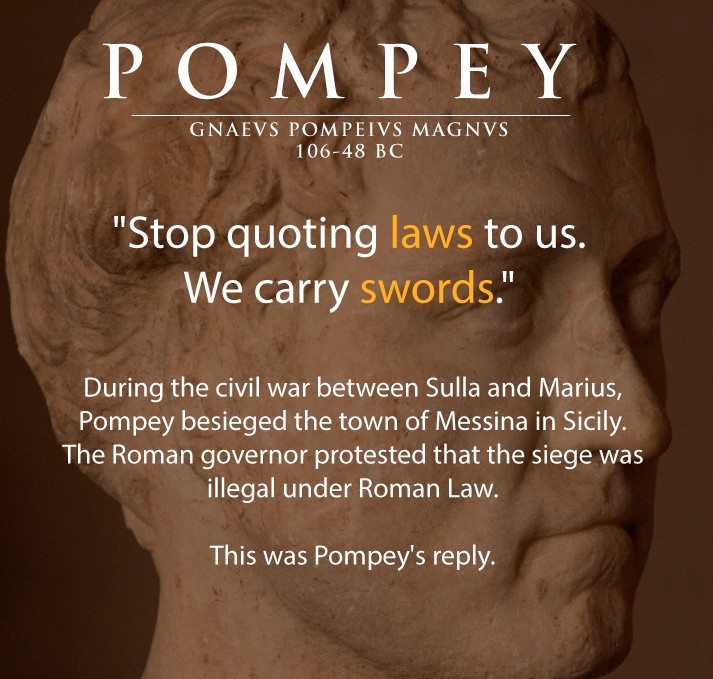 "Will you not give up....reading laws to us men girt with swords?"-Gnaeus Pompeius Magnus
