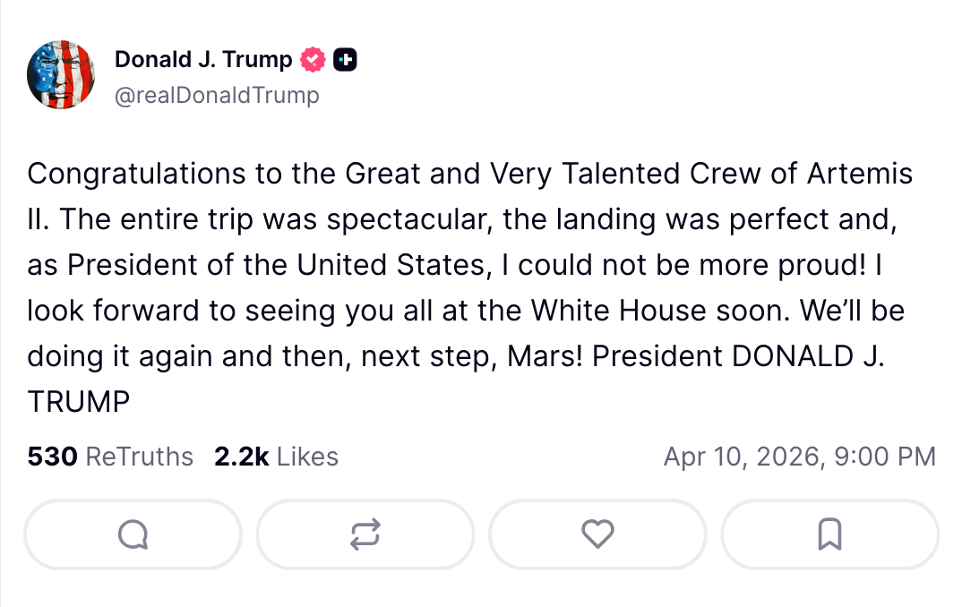SPLASH DOWN CONFIRMED MURICA FUCK YEAH >Artemis II MissionArtemis II NASA's first crewed mission to the Moon in over 50 years. Launched on April 1, 2026, the four-person crew is currently on a ~10-day lunar flyby mission aboard the Orion spacecraft. This is the first time humans have traveled beyond low Earth orbit since Apollo 17 in 1972. The flight is testing systems for future lunar landings.>Live Coveragehttps://www.youtube.com/watch?v=nfhDuOHMp0Ahttps://www.youtube.com/watch?v=m3kR2KK8TEshttps://www.youtube.com/watch?v=z-j1uxBmis0https://www.youtube.com/watch?v=6RwfNBtepa4>Mission Trackershttps://www.nasa.gov/missions/artemis-ii/arowhttps://artemis-ii-tracker.comhttps://issinfo.net/artemis.html>Schedulehttps://www.nasa.gov/wp-content/uploads/2026/01/artemis-ii-overview-timeline-public-final.pdf>The CrewReid Wiseman (Commander)https://www.nasa.gov/people/reid-wisemanVictor Glover (Pilot)https://www.nasa.gov/humans-in-space/astronauts/victor-j-gloverChristina Koch (Mission Specialist)https://www.nasa.gov/people/christina-kochJeremy Hansen (Mission Specialist)https://www.asc-csa.gc.ca/eng/astronauts/canadian/active/bio-jeremy-hansen.asp>Photoshttps://www.nasa.gov/gallery/artemis-ii-astronautshttps://www.nasa.gov/gallery/journey-to-the-moonhttps://www.nasa.gov/gallery/artemis-ii-launchhttps://www.nasa.gov/gallery/artemishttps://www.flickr.com/photos/nasa2explore/>Additional Readinghttps://www.nasa.gov/humans-in-space/orion-spacecraft/https://www.nasa.gov/mission/artemis-iihttps://en.wikipedia.org/wiki/Artemis_IIhttps://en.wikipedia.org/wiki/Orion_(spacecraft)Previous thread: >>532912402