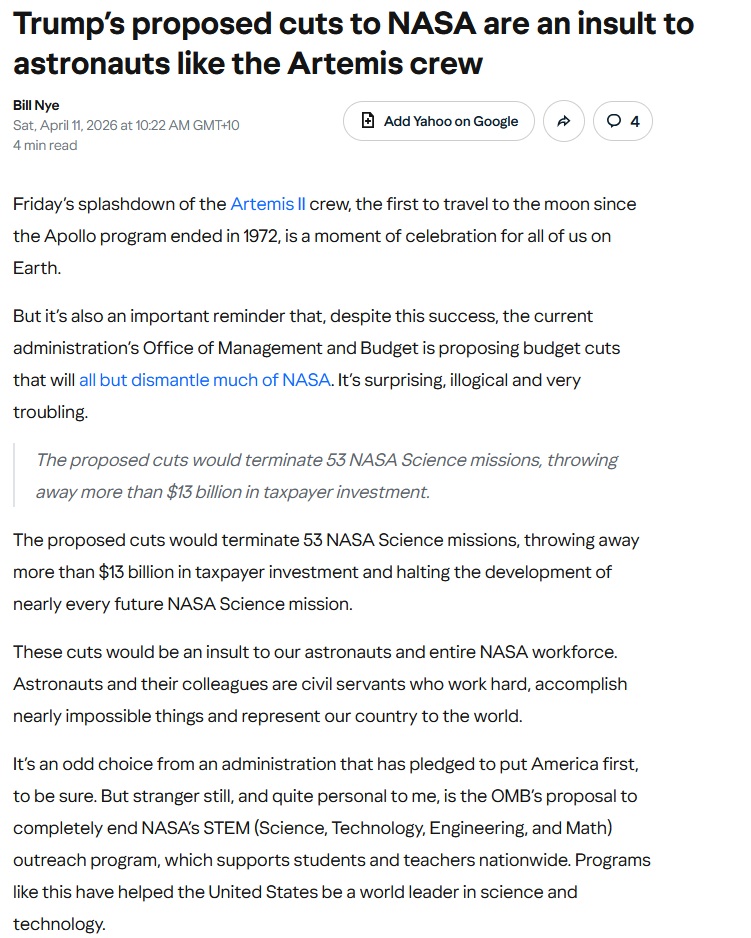 >>532916205trump tried to defund nasathe war in iran has already cost far more than nasa's entire yearly budget