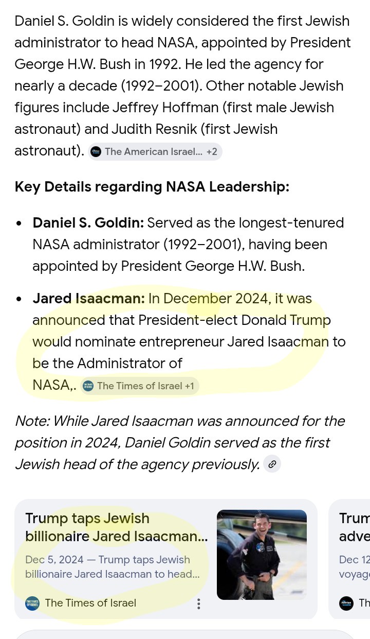 So which Jew was the best head of NASA? Goldin or Isaacman?