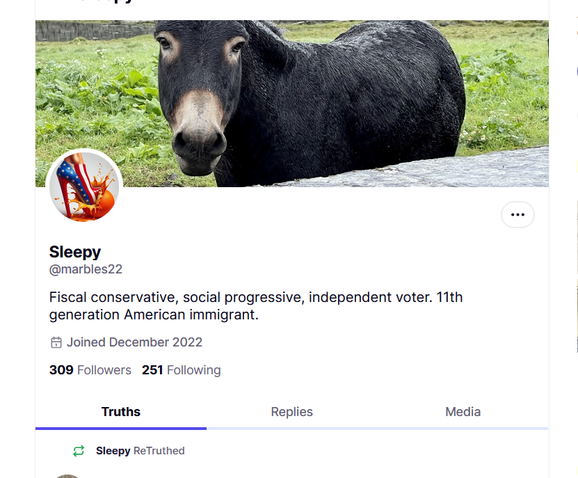 >>532917294>>532917441hey what about this one lol2. https://truthsocial.com/@marbles22>Fiscal conservative, social progressive, independent voter. damn that sure is a trump voter
