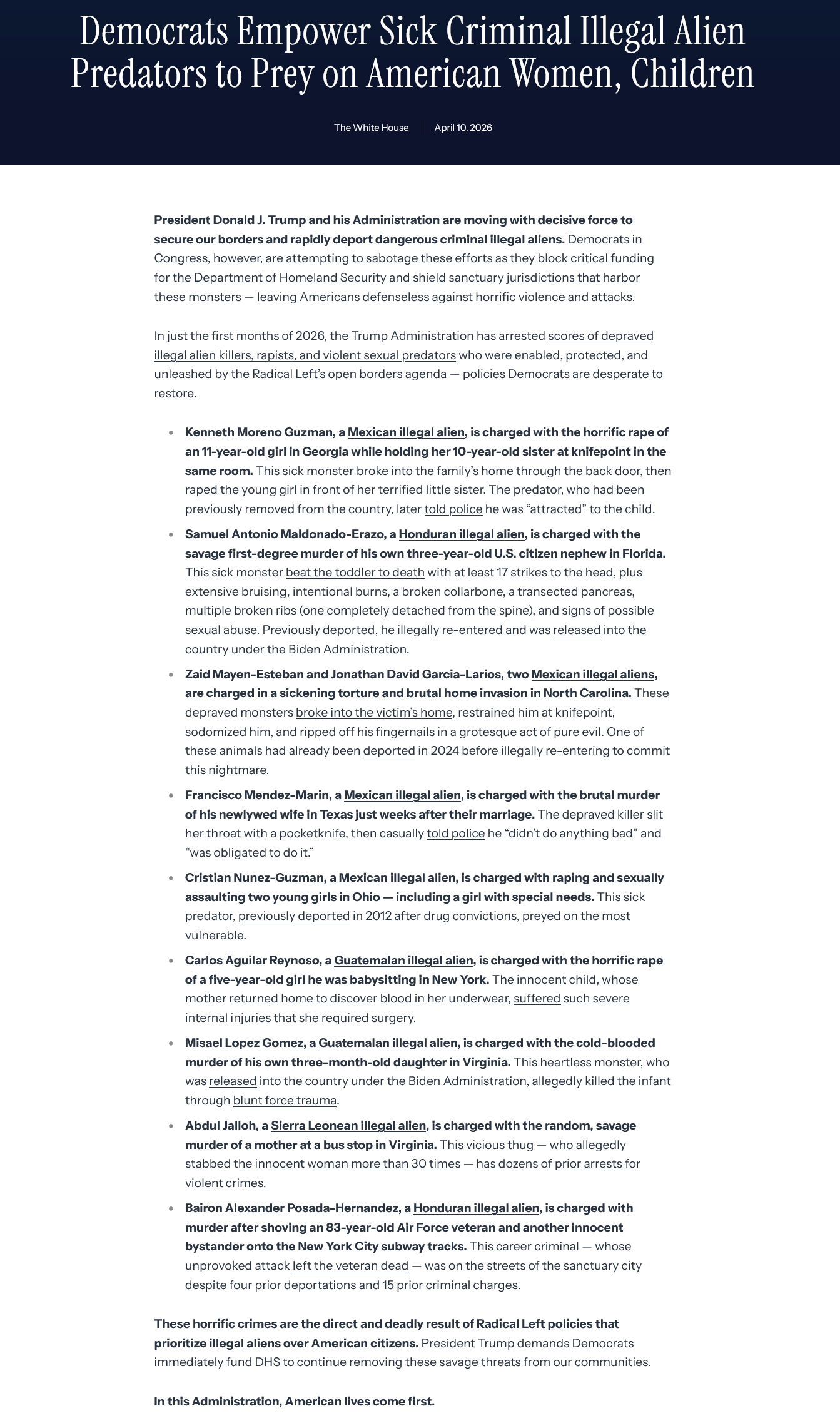 We need an ALL-OF-GOVERNMENT response to the migration crisis in our Country!State ought take maximal action to increase deportations for national security!Treasury ought confirm immigration status with tax filings!Transportation ought collect immigration status when they inspect trucks!Interior ought enforce measures to protect our Country against foreign labor in national parks!Agriculture ought crack down on abuse of farm labor visas!Labor ought throw the book and bust unscrupulous employers which hire illegals!JUSTICE ought launch an all-out judicial crackdown to crush migrant crime and anti-American discrimination! WAR ought mobilize to clear illegal alien terrorists off the streets!Commerce ought restrict government money to companies with strict immigration protocols and secure our economy amid crisis!HHS ought declare that public health justifies emergency measures to deport illegals!HUD ought help DHS to deport illegals who use government housing! Arrest them in their sleep!ED ought collect data on illegals in school and teach children of the migration threat!Energy should be tightening security protocols against migrant crime & terrorism!VA should lend VA Police to DHS!Even other agencies of DHS can lend their staff to ICE and CBP! (In fact, why not establish Joint Deportation Commands in various districts across the Country?)Every department has multiple roles it can fulfill in our national struggle against foreign contamination! Labor can do a lot more than just break bad unions--they collect labor statistics, it's not hard to collect illegal alien labor data!REGULATE IMMIGRATION TO DEATH! Have every department writing regulations to protect the American people against legal alien labor and reduce the number of foreigners in America!We cannot stop restricting the barbarians until our wages recover and our Country is happy and prosperous again!
