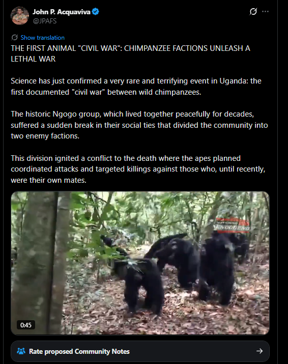 GORILLA CHANNEL GETTING NEW PROGRAMMINGATTENTION PTGWE GOT A NEW MONKEY CIVIL WAR, THE FIRST SINCE THE 70's.WHERE ARE THE COMMIES SAYING WARS ARE ONLY A HUMAN THING, NOT ANIMALS?https://x.com/JPAFS/status/2042612866910437404
