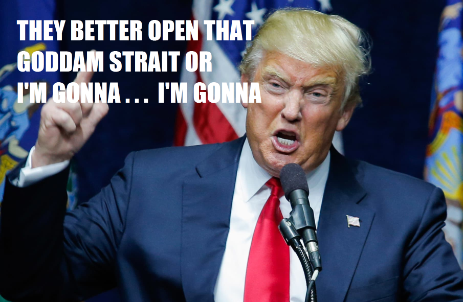 MINE THEENTIRE FUCKINGWORLDSHUTDOWNTHESTRAIGHTOFEARTHBLOCKADE EVERYTHING!!!!SHUTDOWNEVERYTHINGWhat are they gonna do, write an angry social media post?