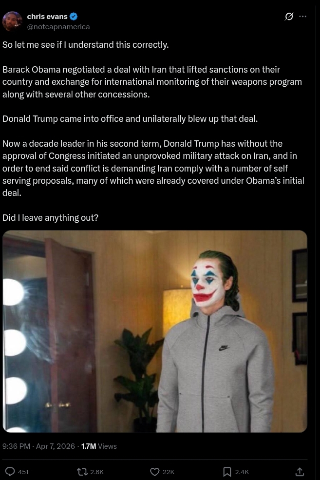 Tomorrow negotiations start, so obviously that will be when Trump invades and Israel launches nukes right?