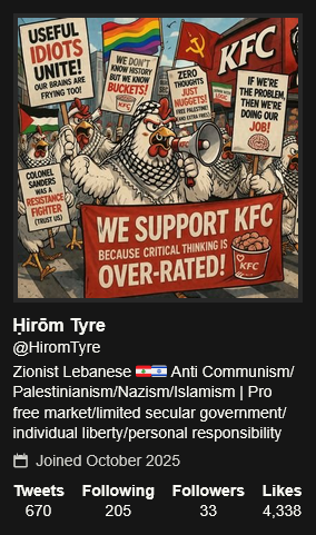 >>532948655Talking about Turkey, that ugandan general that said they would join the war to fight for israel against Iran is now demanding money from Turkey.https://x.com/mkainerugaba/status/2042872911111885107>We are demanding $1billion (minimum) from Turkey. Before we even talk.it's extremely obvious that the next target of Zionism is Turkey.