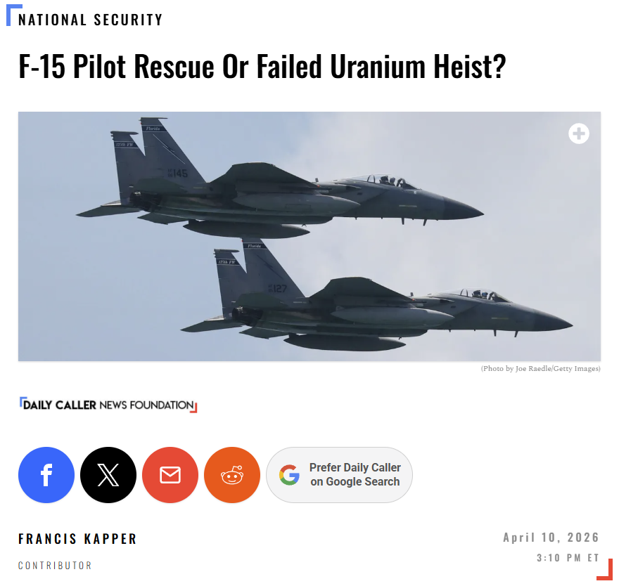 Today I will remind them.https://dailycaller.com/2026/04/10/f-15-pilot-rescue-or-failed-uranium-heist-iran/
