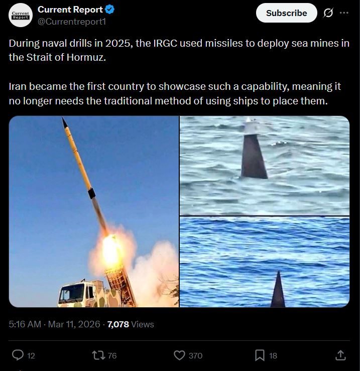 I can't stand the pentagon anymore with their idea that ships can't pass because of the fear of mines or insurance rates.I fucking can't, I explained it to them here hundreds of times by now.They always keep back to mines when it is missiles and drones since week one that stop all passage.How often will they cycle back to their 80s mine wargaming again? When everything changed in the past two month.