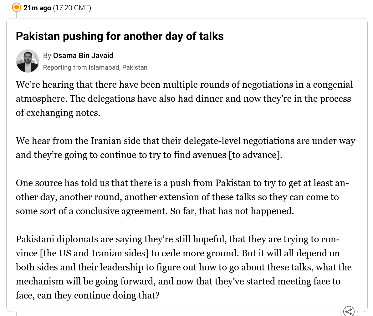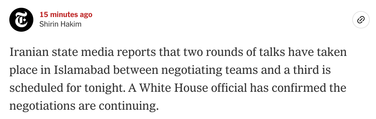 >>532962301They are sitting at the same table. >Pakistani state TV said US and Iranian officials were “sitting directly at the same table” – which was later confirmed by the White Househttps://www.theguardian.com/world/2026/apr/11/us-iran-talks-peace-deal-islamabad-pakistan