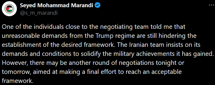 >>532962206the "greedy America" meme sounds just like when Pakistan came out and supported Iran in pretending that the ceasefire was supposed to include Israel and Lebanon. then Iran's and Israel's actions demonstrated that it actually hadn't. I'd assume its a face-saving exercise to help Iran capitulate smoothly without the IRGC chimping out as much.