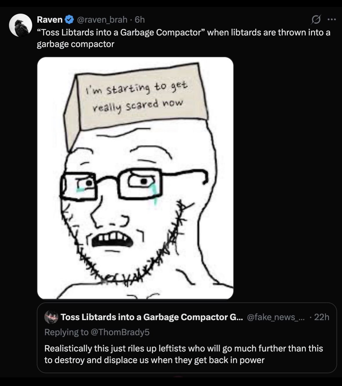 >>532974780Europeans on 4chan have spent the last 20 years calling me subhuman, mocking White replacement in America, laughing about dead americans, calling us amerimutts and golems. Your governments have spent that same time undermining and subverting our government trying to force us into managed decline. The EU has spent the last month screaming that America must be destroyed and doing everything they can to aid and abet our enemies.Save your crocodile tears, nigger. I want to see you broken, raped, and humilitated. Furthermore, I think that Canada must be destroyed.
