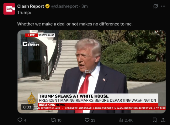 If there was good news out of the negotiations Trump would be blasting about it on Truth. His silence tells us everything we need to know.