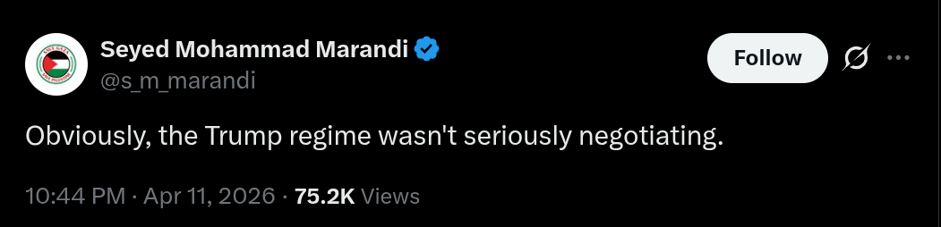 >Professor Seyed Mohammad Marandi, member of the Iranian delegation: “Obviously, the Trump regime wasn’t seriously negotiating.”