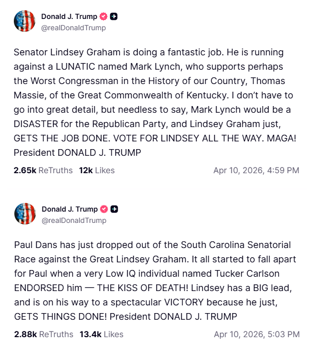 >Trump endorses Lindsey Graham while viciously attacking Tucker Carlson and Thomas Massie at the same time