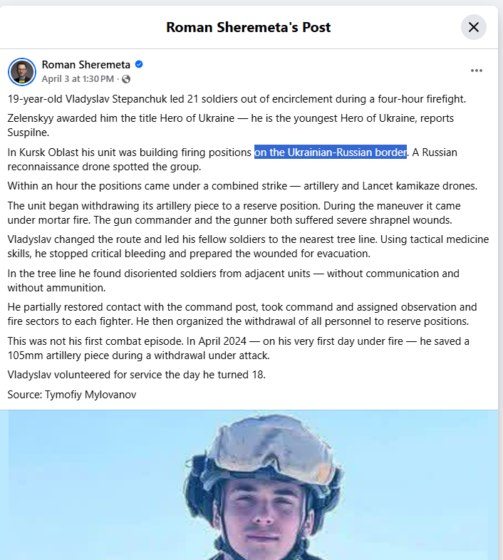 >“Russian units have expanded the control zone in the Yunakovka-Varachino area, in Sumy direction.” — Divgen