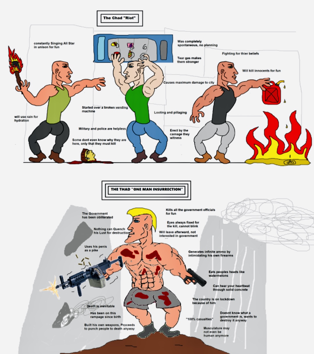 >>533009624Violence, not funny. >>533009979Fat person Not funny >>533011185More violence Not funny. I don't think any of you know what humor means. Also most of this is regurgitated and reused over and over. Like you guys are some kind of NPCs stuck in a loop, like when you go to do a quest and it's the same quest over and over every week. I'm sure I could go down the list through this entire thread and find that none of it is funny and all of it is reused content.